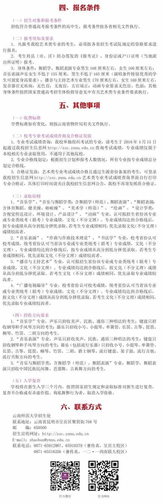 如果大家需要了解更多云南师范大学招生简章、招生考试时间、历年考题、优秀试卷、分数线、成绩查询等信息,请进入:云南师范大学2018年艺术类招生信息网
